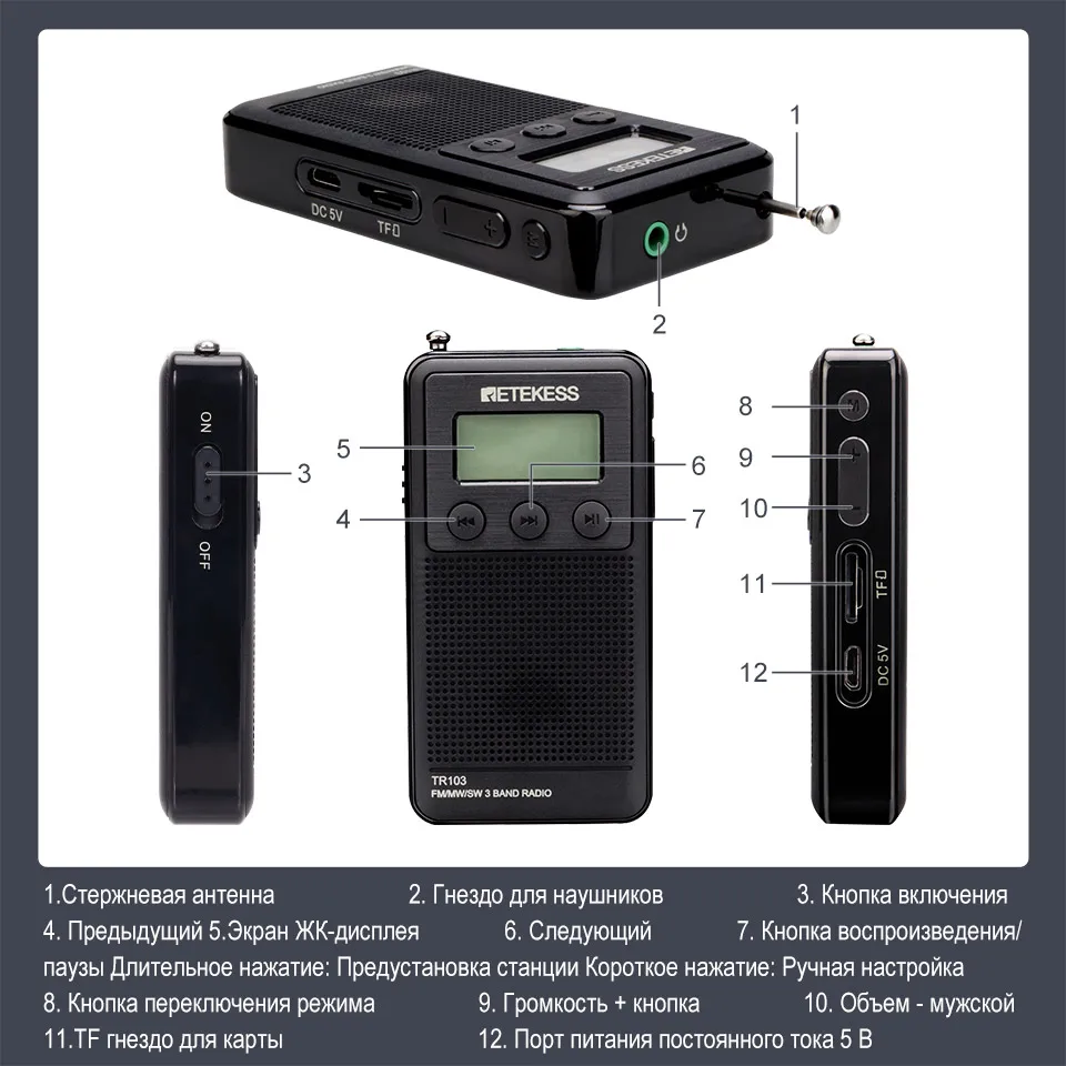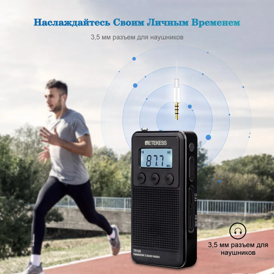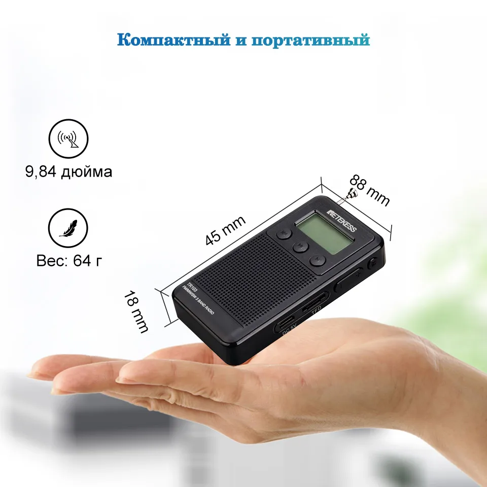 Retekess TR103 карман Портативный Мини Радио FM / MW / SW Цифровая настройка радио 9/10 кГц MP3 музыка плеер с Перезаряжаемые Батарея