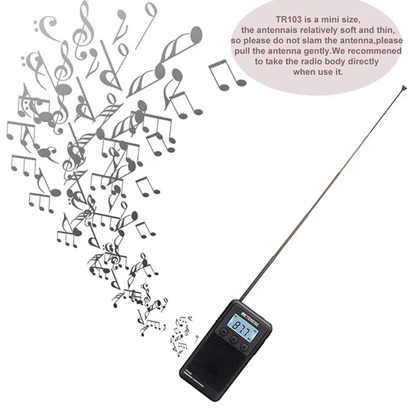 7. Транзисторный радиоприёмник с технологией DSP:ПортативныйРадиоприёмник TR103с технологией DSP обеспечивает лучший прием и защиту от помех. Вы можете легко найти местные станции. Защита батарейного отсека при выключении.
