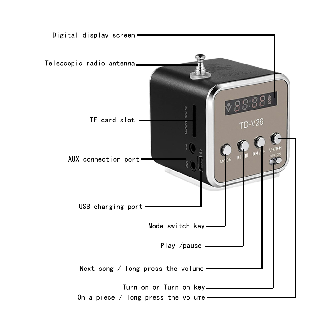 Мини-радиоприемник, Bluetooth, беспроводные колонки, цифровое Fm-радио для ПК, телефона, Mp3, музыкальный плеер с поддержкой карт Micro SD