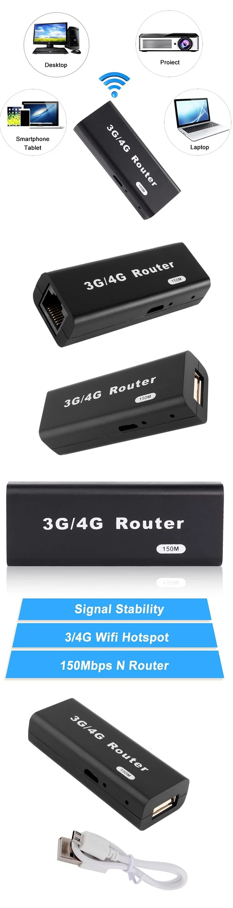 Мини-роутер Wi-Fi 3G/4G, беспроводная точка доступа WLAN RJ45 Micro USB, сетевая карта, адаптер USB 3G Modems для большинства устройств Wi-Fi