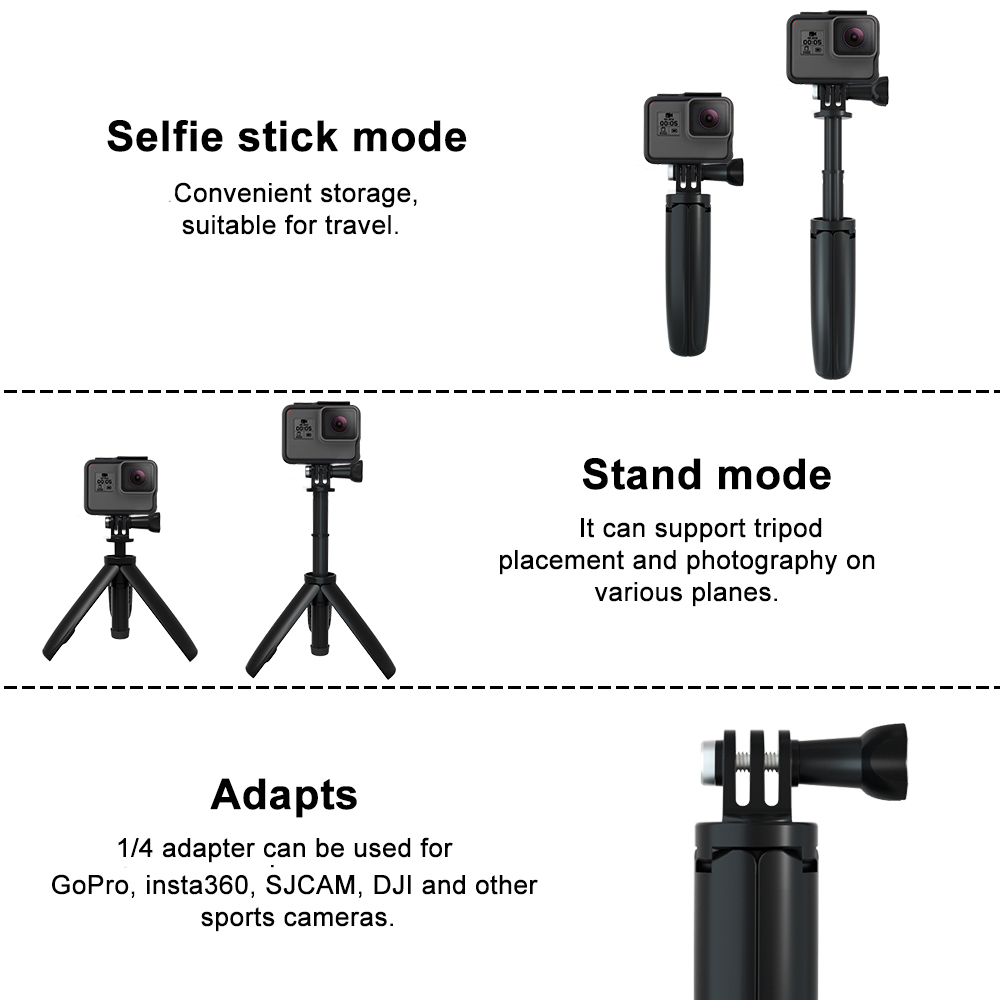 Выдвижная ручная селфи-палка Мини-штатив Портативный монопод для Go Pro Hero 11 10 9 8 7 6 5 4 SJCAM DJI insta360 Action 3 2 Camera