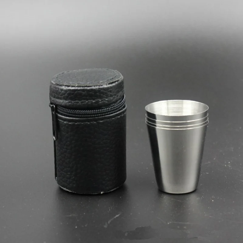 4 шт./Компл. 30 мл мини-рюмки из нержавеющей стали для питья вина с кожаным чехлом Сумка чашка для бара портативная уличная дорожная чашка
