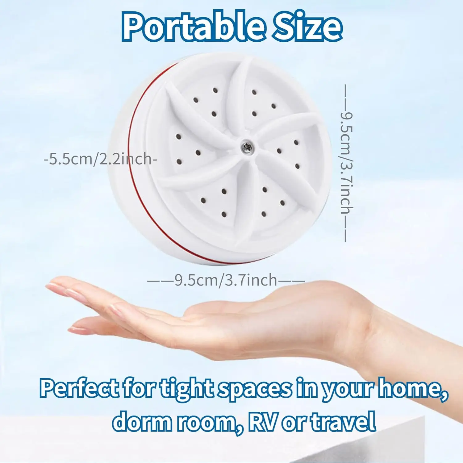 • Портативный дизайн:Эта компактная стиральная машина идеально подходит для путешествий или домашних командировок, так как ее можно легко носить с собой и использовать где угодно.