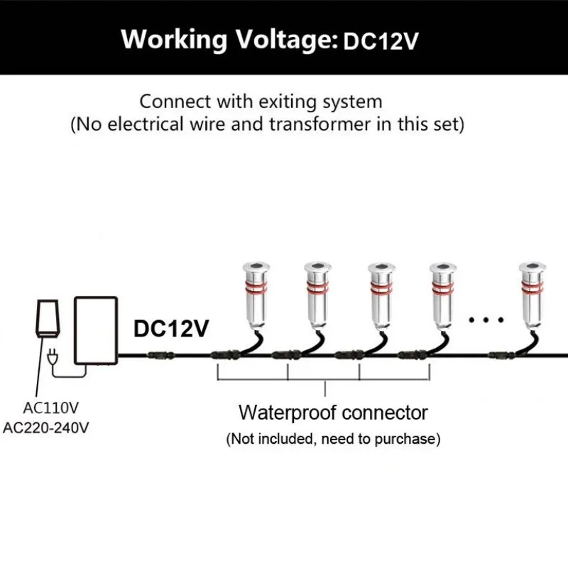 Обратите внимание: Подводная лампа представляет собой низковольтную лампу. При необходимости Подключите DC12V или DC24V.