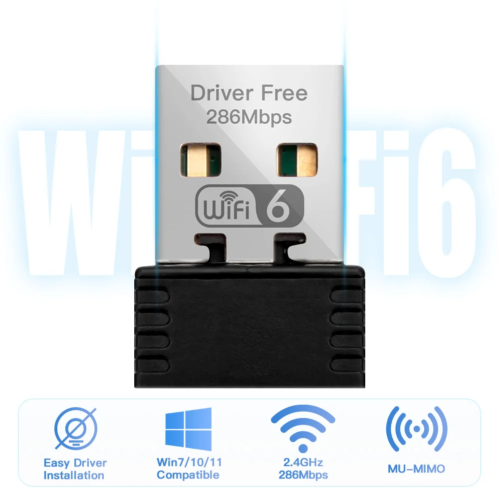 Мини USB Wi-Fi 6 адаптер Сетевая карта 2,4 ГГц Стандартный Wi-Fi Lan 802.11ax драйвер бесплатно для ПК/ноутбука Windows7/10/11