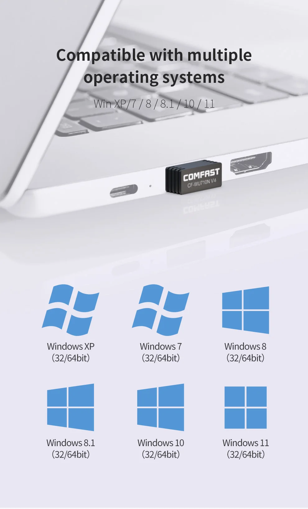 Поддержка большинства систем на рынке CF-WU710N поддерживает большинство систем на рынке, таких как: Win XP/Win7/Win8/Win8.1/Win 10. Позвольте вам наслаждаться миром беспроводных сетей.
