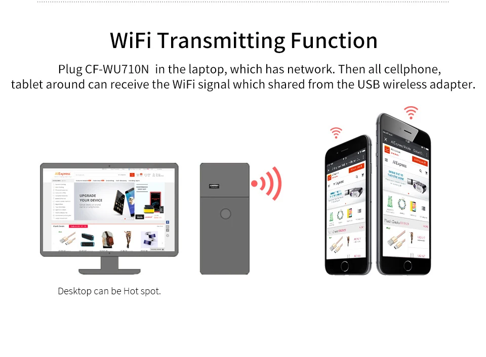 Функция приема Wi-Fi Подключите CF-WU710N к рабочему столу для приема сигнала Wi-Fi.