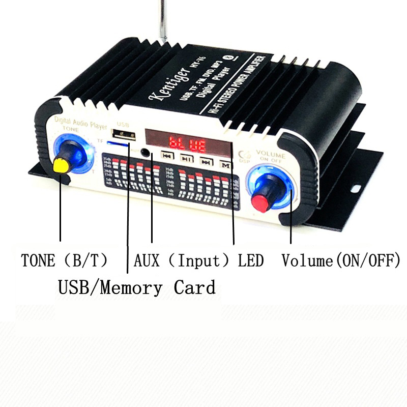 Мини-усилитель Kentiger HY-V6 с Bluetooth, TF, USB, FM-радио, DC 12 В, Hi-Fi, стерео усилитель мощности с пультом дистанционного управления для автомобиля и дома