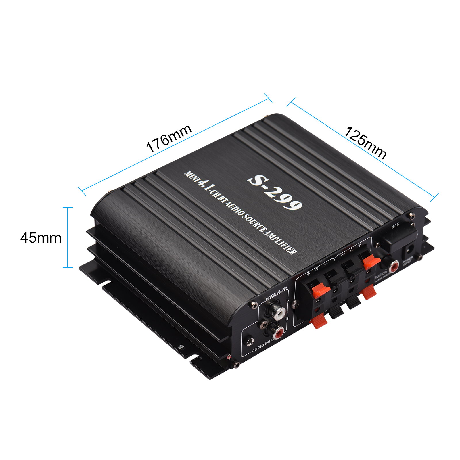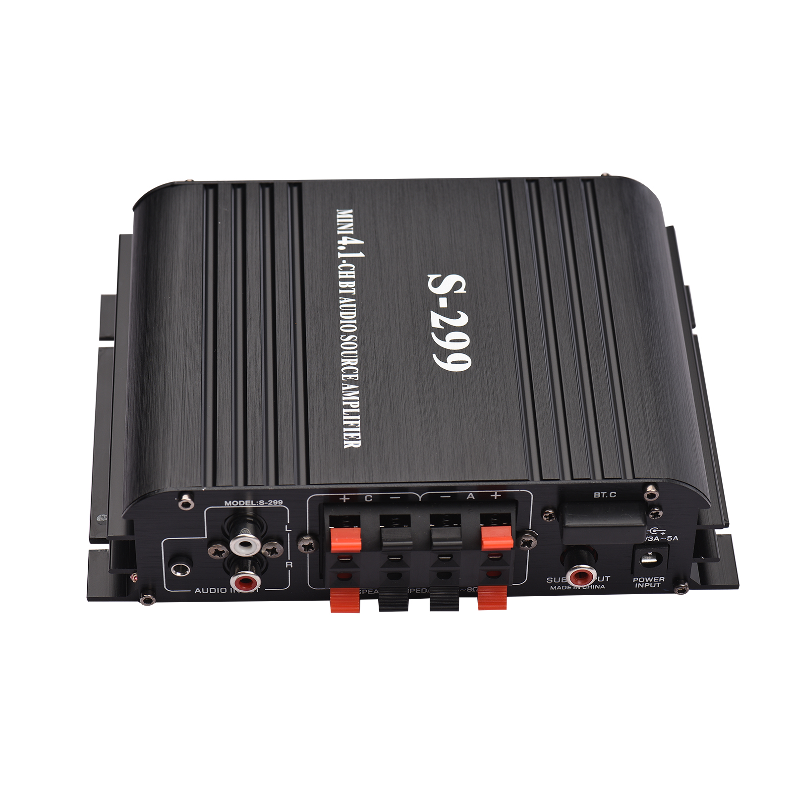 Помимо подключения к четырем динамикам мощностью 40 Вт, его также можно подключить к активному сабвуферу, который не имеет ограничения мощности.