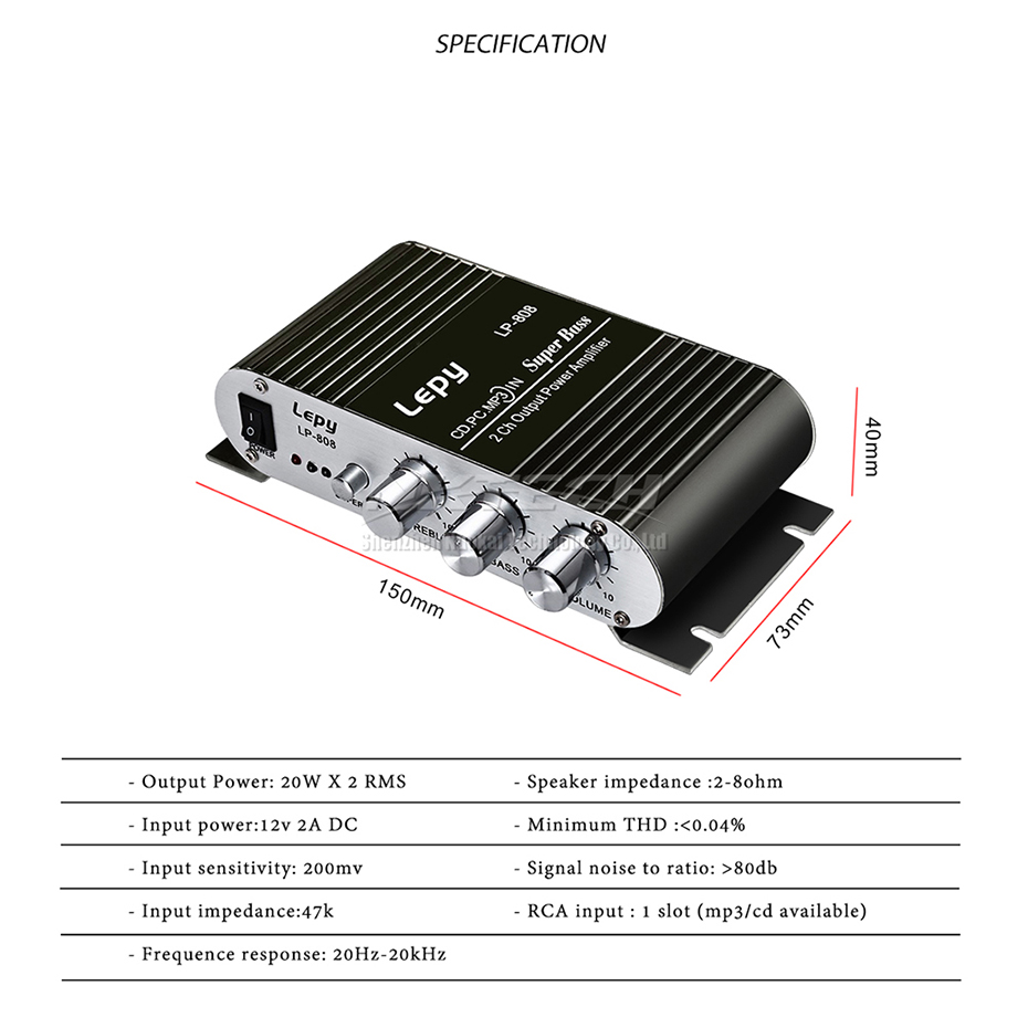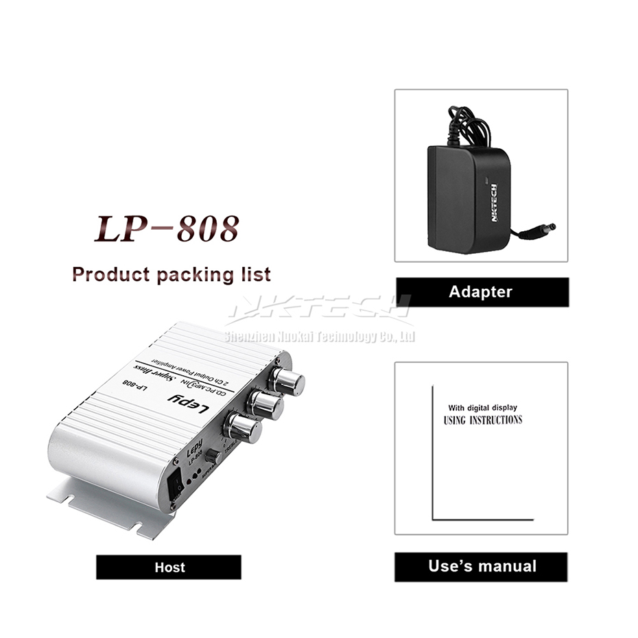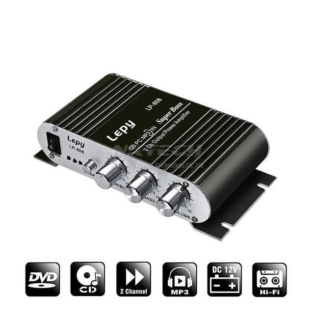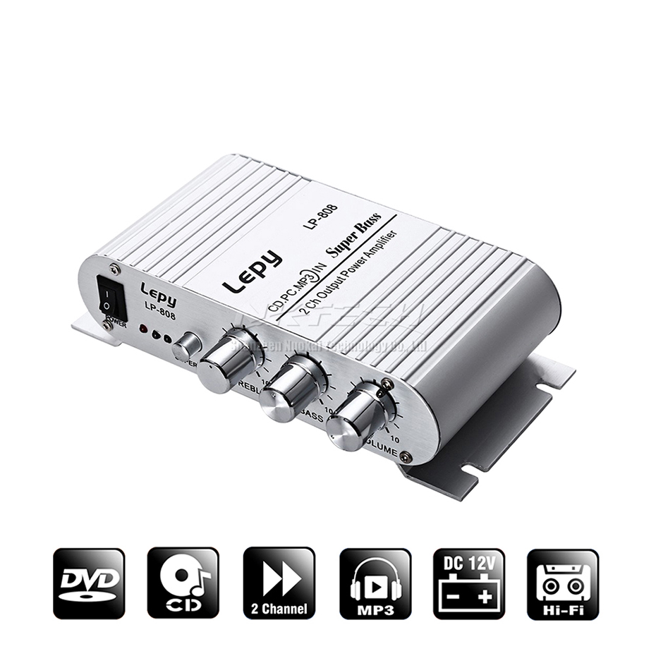 Мини-усилитель мощности для автомобиля LP-808 Lepy, цифровой плеер, Hi-Fi, стерео, CD, MP3, MP4, ПК, динамик, для мотоцикла, дома, супер бас, 2-канальный аудиоусилитель