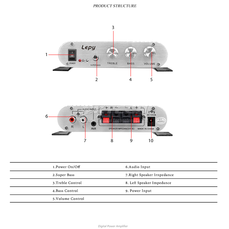 1 x LP-808 Hi-Fi Stereo Amplifier Black or Silver.