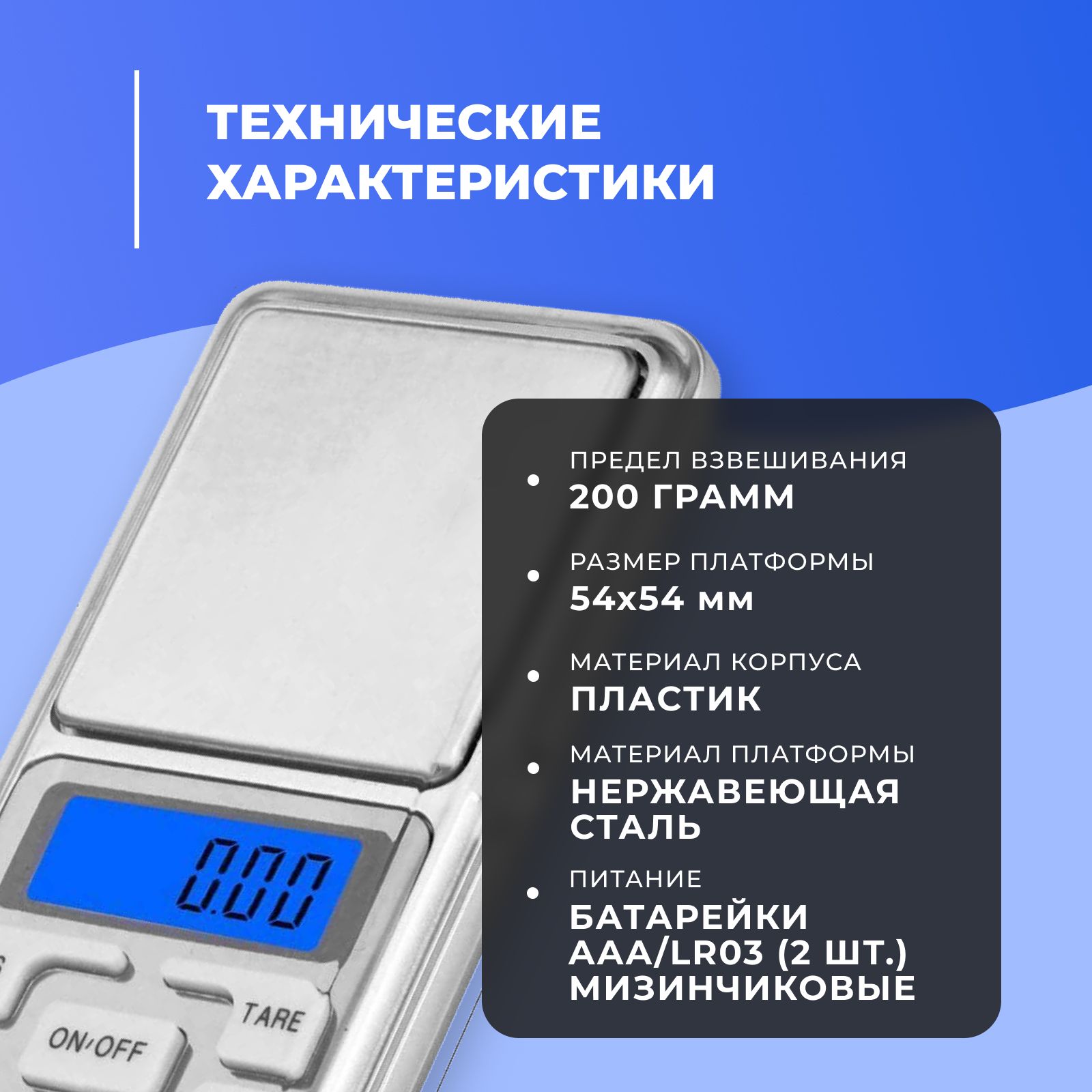 • материал корпуса: пластик • цвет корпуса: серый • питание: 2 батарейки тип AAA/LR03 "мизинчиковые"Текст при отключенной в браузере загрузке изображенийОСНОВНЫЕ ПРЕИМУЩЕСТВА:1. Точность взвешиваний с погрешностью менее 0,01 грамма. Обеспечит отличный результат работы;