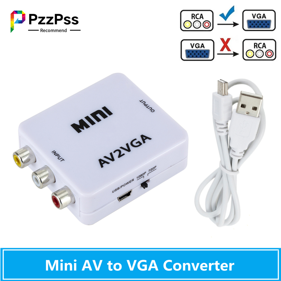 Мини-видеоконвертер PzzPss 1080P RCA AV на VGA, видеоконвертер, конвертер с 3,5 мм аудио AV2VGA / CVBS + аудио на ПК HDTV