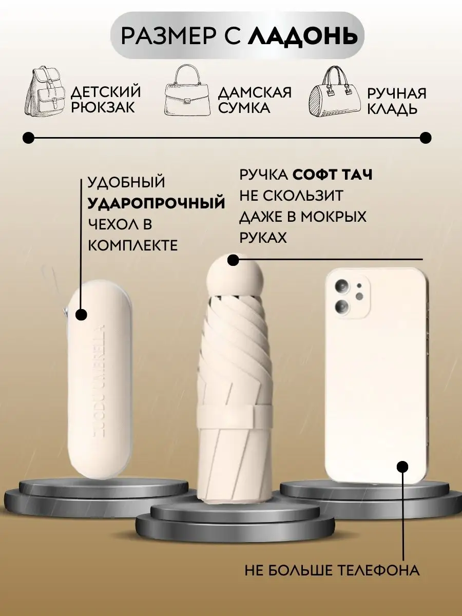 Описание: Карманный мини зонтик в твердом кейсе выручит вас в любой ситуации. Инновационная двухслойная ткань. Миниатюрный размер позволит вместить его даже в карман. Красивый лаконичный дизайн. Имеет в коллекции универсальные спокойные цвета. Стильный унисекс аксессуар - отличный подарок на день рождения. Можно подарить мужчине, женщине и ребенку. Минизонт подойдет для детей и пожилых людей. Простое механическое складывание без кнопок. Легкий вес идеален для детских ручек и старшего поколения. Практичный небольшой презент понравиться маме, папе или бабушке. Однотонные расцветки базовых цветов понравятся подросткам в школу. Складной mini зонт упакован водонепроницаемый противоударный чехол для хранения. Несмотря на компактность в сложенном виде, при раскладывании большой купол накроет от сильного ливня или осеннего снегопада. Крепкий корпус из 6 спиц , система антиветер делает его устойчивым к порывам ветра. Приобретайте удобный зонтик от YaFamily, пусть теплые семейные прогулки не зависят от погодных условий!