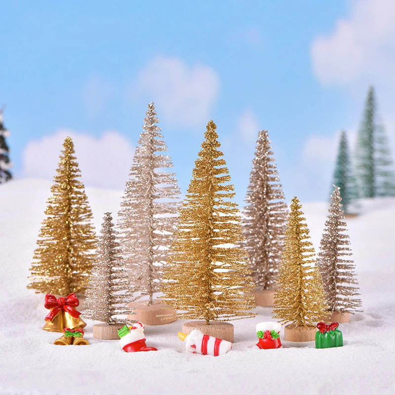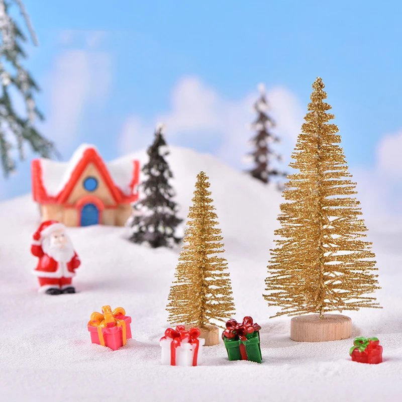 Миниатюрная фигурка рождественской елки из сизаля, шелка, кедра, сосны, миниатюрный микроландшафт, новогоднее сказочное украшение для сада