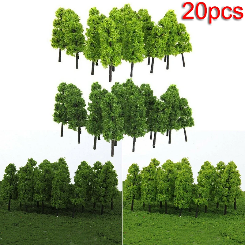 *20Pcs Miniature Landscape Scenery Train Railways Trees Model Scale 1:200 Green