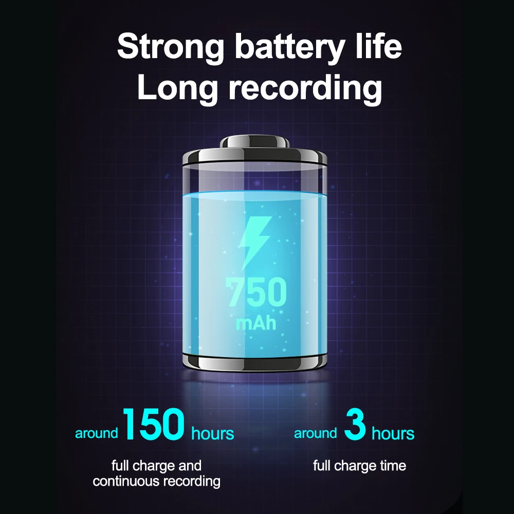 Изготовлен из цинкового сплава, рекордер является прочным и надежным в использовании. Он встроен в аккумулятор большой емкости 750 мАч и может непрерывно записывать около 150 часов. Оборудована кухонным гарнитуром с 3,5 мм проводные наушники, поддерживает MP3, запись, воспроизведение, регулировка громкости и переключение треков.