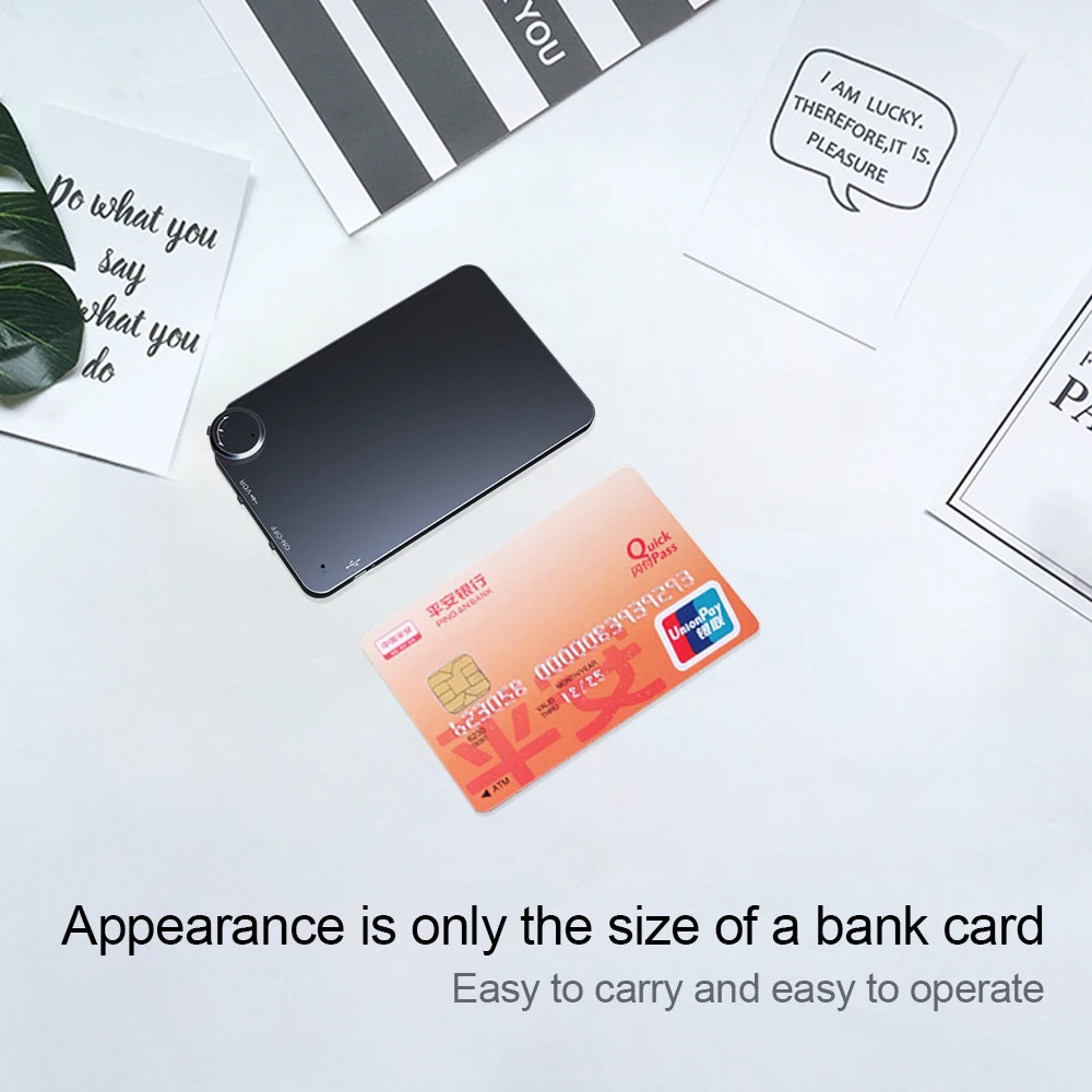 Ультра-тонкий размер 4 мм позволяет легко и удобно положить его в бумажник, карман для записи важных голоса в жизни.