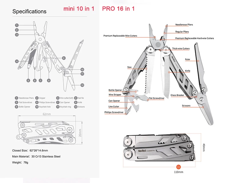 5. 10 в 1 мульти-инструменты: собрать плоскогубцы, нож, отвертка, открывалка для бутылок, может openertools в одном. Супер Мини в размере, но сильный в функциях.