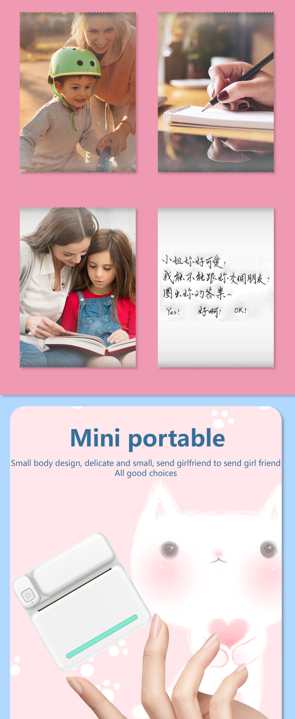 4. Удобно для вашей жизни: можете записывать пейзаж, который вы видите, записывать его или ее сладкие слова, весело и практично. Встроенный аккумулятор емкостью 1000 мАч, мини-принтер не требует картриджа с чернилами при использовании, низкая стоимость эксплуатации.