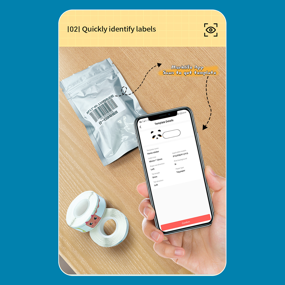 5. Редактирование приложений:Этот принтер этикеток может загрузить приложение для редактирования. Пожалуйста, обратитесь к Руководству по эксплуатации, отредактируйте нужный Вам текст в приложении, и набранная этикетка представит нужный текст и эффект. Этот принтер этикеток подходит для различных отраслей промышленности. Можно напечатать мелкий шрифт, границу или текст.