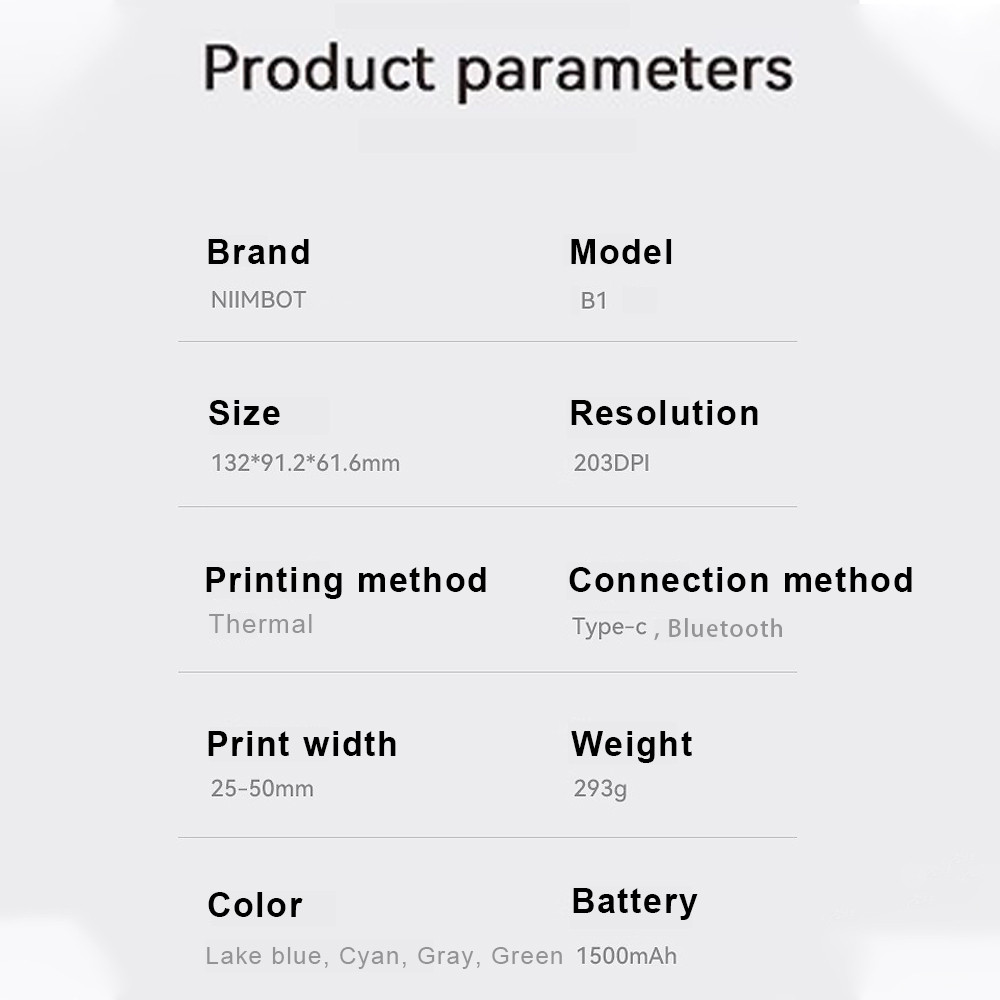 ИЗГОТОВЛЕНИЕ ЭТИКЕТКИ БЕЗ ВРАЩЕНИЯ: технология прямого нагрева без бисфенола А. Машина для изготовления этикеток NIIMBOT B1 с лентой, 1,96*1,18 дюйма (50x30 мм). Принтер этикеток B1 поддерживает ширину этикетки 0,8-2 дюйма. Размер мини-производителя этикеток: 5,2*3,6*2,4 дюйма (13*9*6 см). Вес: 0,7 фунта.