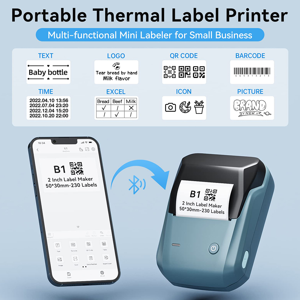 ПРОСТОТА ИСПОЛЬЗОВАНИЯ: Bluetooth-принтер этикеток B1 поддерживает iOS, Android и ПК. Приложение включало более чем поддержку 30 + шрифтов/языков, 100 + границ и 1500 + символов. Просто Нужно загрузить бесплатное приложение, выбрать и подключить модель принтера B1 из приложения NIIMBOT, а затем наслаждаться печатью.