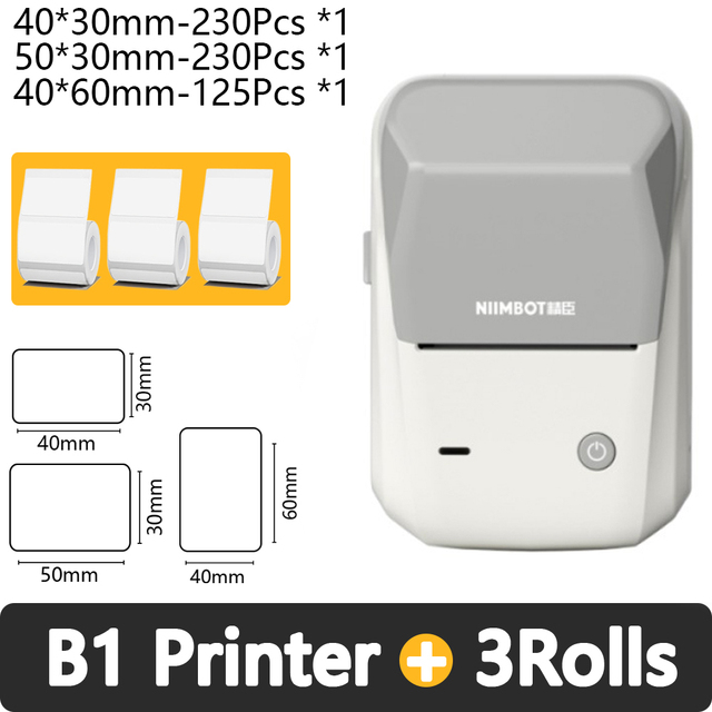 ИЗГОТОВЛЕНИЕ ЭТИКЕТКИ БЕЗ ВРАЩЕНИЯ: технология прямого нагрева без бисфенола А. Машина для изготовления этикеток NIIMBOT B1 с лентой, 1,96*1,18 дюйма (50x30 мм). Принтер этикеток B1 поддерживает ширину этикетки 0,8-2 дюйма. Размер мини-производителя этикеток: 5,2*3,6*2,4 дюйма (13*9*6 см). Вес: 0,7 фунта.