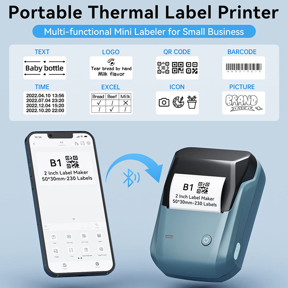 ПРОСТОТА ИСПОЛЬЗОВАНИЯ: Bluetooth-принтер этикеток B1 поддерживает iOS, Android и ПК. Приложение включало более чем поддержку 30 + шрифтов/языков, 100 + границ и 1500 + символов. Просто Нужно загрузить бесплатное приложение, выбрать и подключить модель принтера B1 из приложения NIIMBOT, а затем наслаждаться печатью.