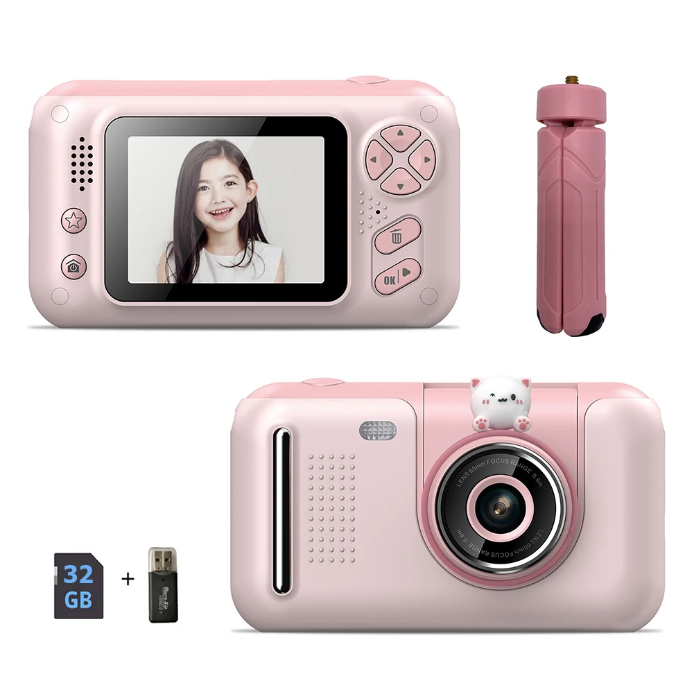 3. Аксессуары:Эта удобная для детей камера оснащена 2,4-дюймовым экраном и штативом/селфи-палкой, что повышает удобство использования и позволяет детям легко снимать фотографии или видео. Настольный штатив с фиксированным/селфи-палкой открывает новый режим фотосъемки. Также В комплект входит переносная подвеска на шнурке для удобной переноски и мобильности.