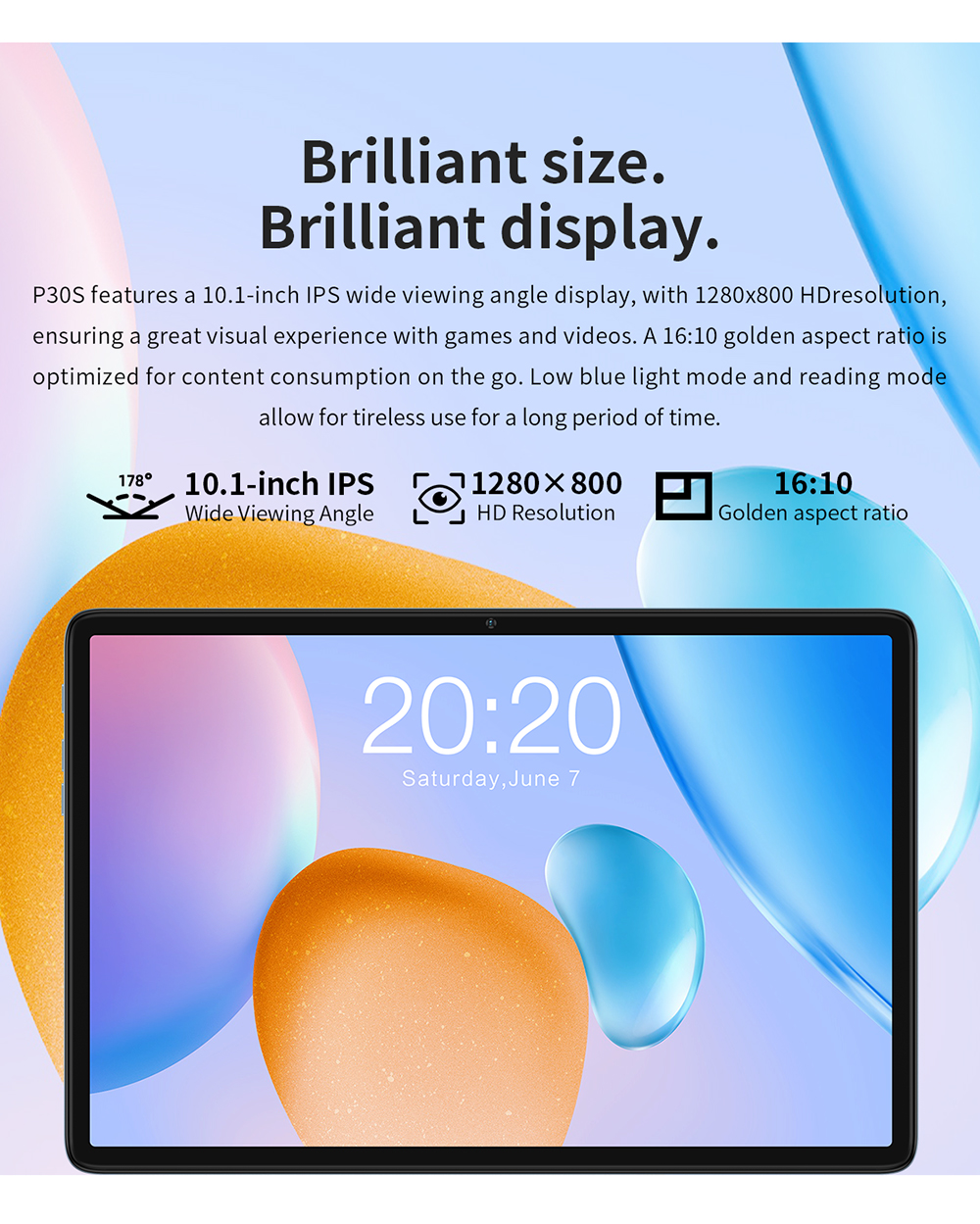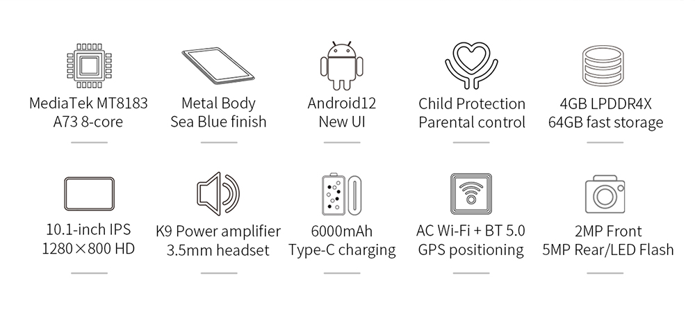 [Мировая премьера] Teclast P30S планшет 10,1 дюймов 1280x80 0 IPS Android 12 4 Гб RAM 64 Гб ROM MT8183 8 ядер GPS Type-C 6000 мАч металл