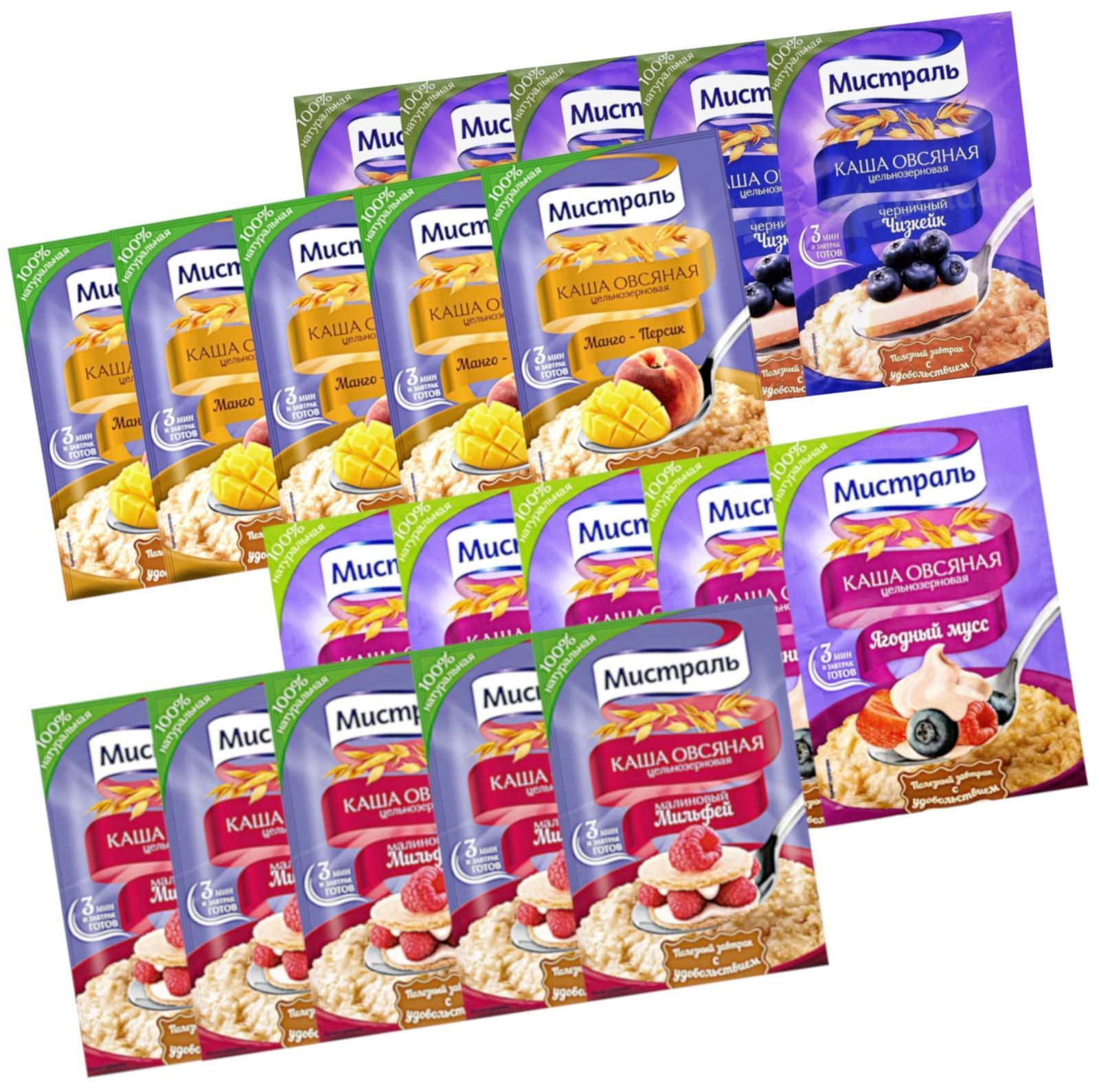 Мистраль Каша овсяная цельнозерновая в ассортименте, порционная, 20 пак * 40 г