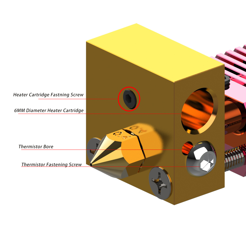 Type2 Ender3 Red Extrusion Head 3S/5/6 CR8/10 Heating Block Aluminum Alloy Nozzle Throat Assembly