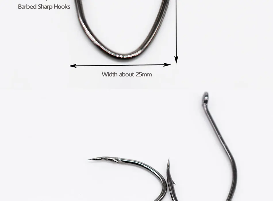 An unique shape and large gap are designed to optimize hook penetration and hold fish more securely once hooked.