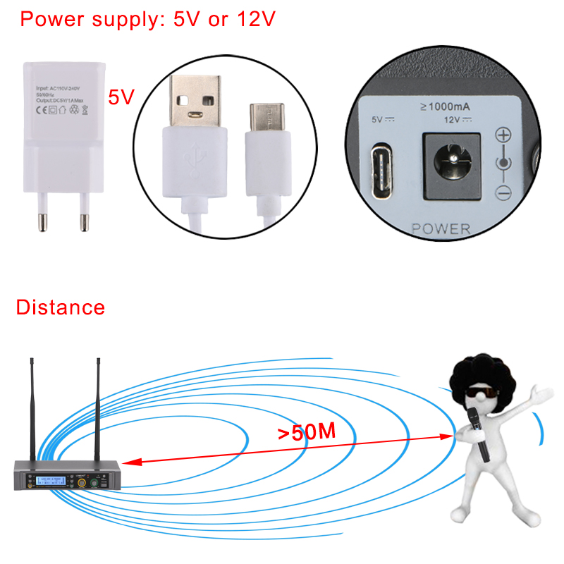 Многочастотный беспроводной микрофон Lomeho LO-U11 2X380, 5 В