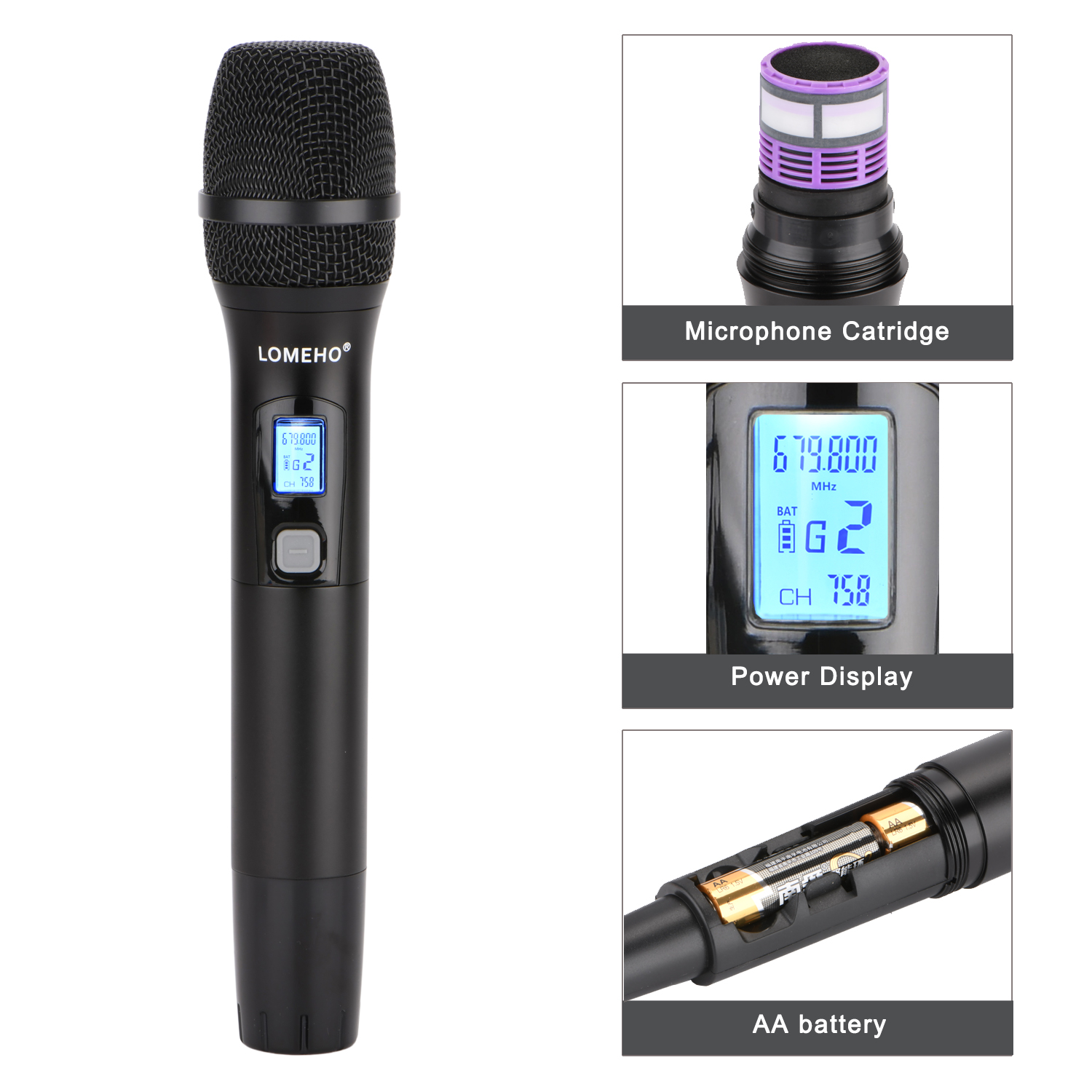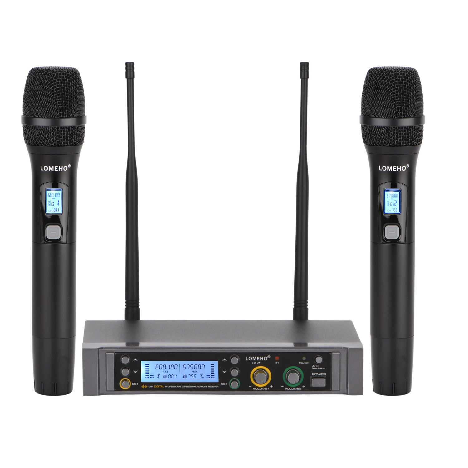 Lomeho 2 Way 2X380 многочастотный DC 5V с защитой от обратной связи бесшумный DJ Вечеринка караоке церковь металлический портативный беспроводной микрофон
