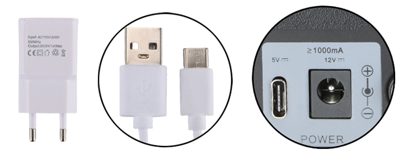 1) Источник питания постоянного тока 5 В: вы можете использовать Power Bank для подачи питания.