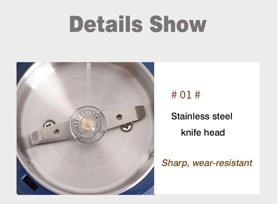 • Многофункциональное использование. :Эта электрическая шлифовальная машина предназначена не только для кофейных зерен, но и для измельчения зерен, орехов и зерен, что делает ее универсальным кухонным инструментом.