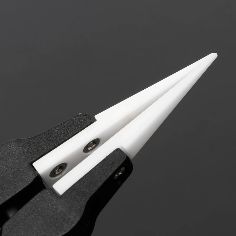 Пинцет изготовлен из высокотемпературной керамической стойкости к запеканию. Трудно, гладко и жаростойко, может успешно завершить работу в высокоинтенсивном магнитном поле, особенно применяется для кислотной и высокотемпературной сварки. Керамический материал является отличным окислительным, трудно производить ионный перенос. И он не будет генерировать статическое электричество, когда передача свяжется с продуктом.