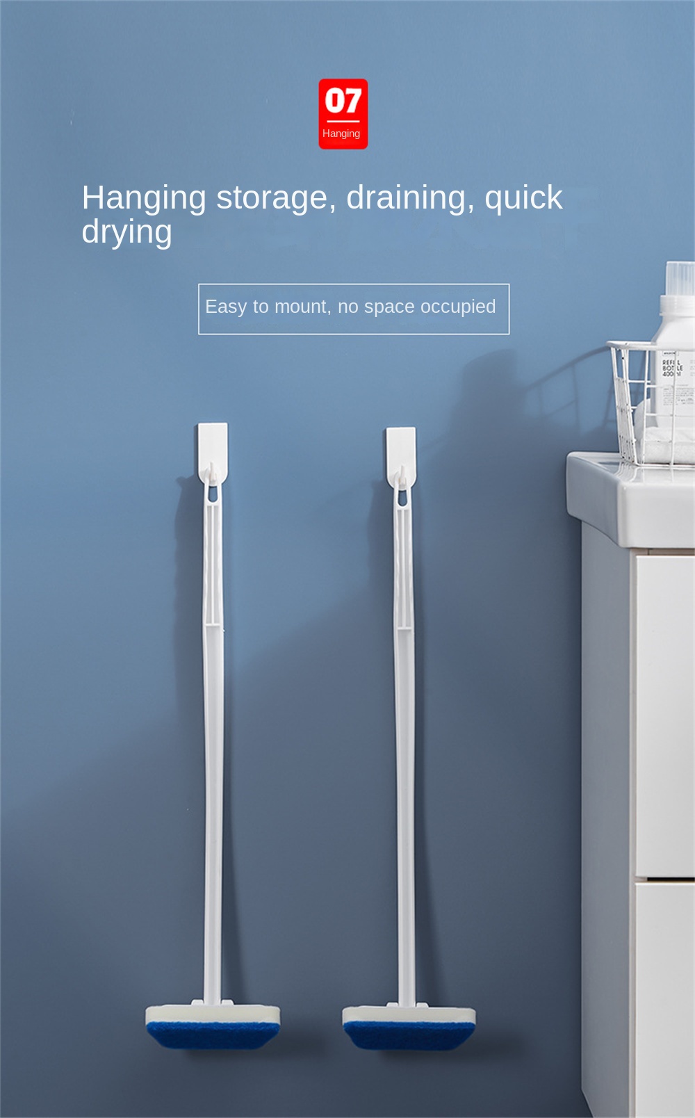 1. Для настенной щетки для ванной комнаты поверните головку щетки на 90 °, чтобы свободно регулировать угол.