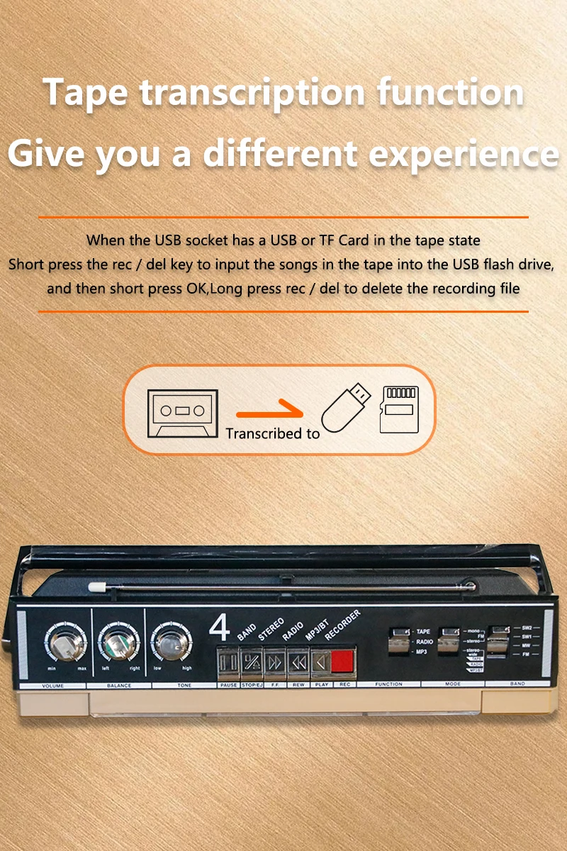 2. Поддержка ленты/USB/SD/MP3 воспроизведения/Bluetooth воспроизведения и записи функций