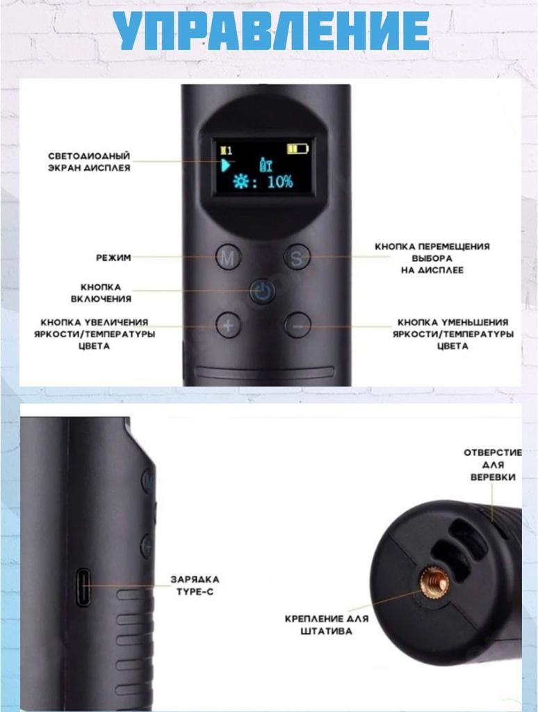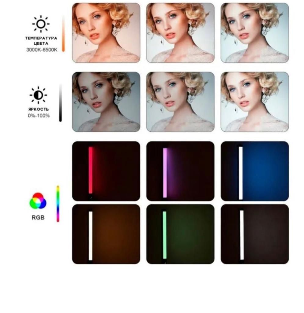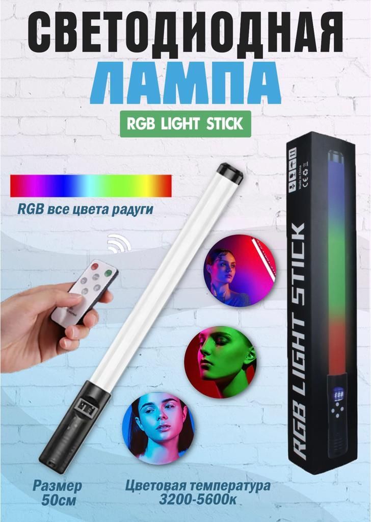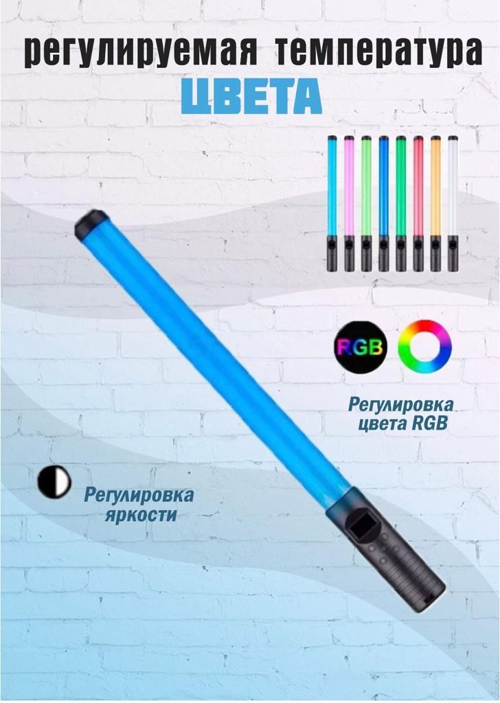 Описание: Светодиодная RGB лампа - аккумуляторный инновационный светодиодный осветитель для студийной / выездной съемки, проведения стримов, создания необычной атмосферы, может работать в режиме LED подсветки. За счет своего небольшого веса светодиодную RGB палку просто перемещать вручную, что позволяет быстро управлять светом. Имеется крепление для присоединения штатива или пантографа, за счет чего быть интегрирована в LED светильник благодаря своему небольшому диаметру и весу. LED лампа имеет широкий спектр применения в фото и видео съемке. Со светодиодной палкой RGB Вы сделаете свой контент по-настоящему уникальным, будь-то это стрим, видеоконтент или съемка на телефон. С помощью встроенного LED экрана можно настроить RGB Stick под любой сценарий. Настройка цветовой температуры в диапазоне от 3000K до 6000К люмен. Вы можете установить один из нескольких цветов, или выбрать один из готовых режимов для съемки. USB Type-C интерфейс для зарядки позволяет удобно заряжать лампу от внешнего аккумулятора или сетевого адаптера.