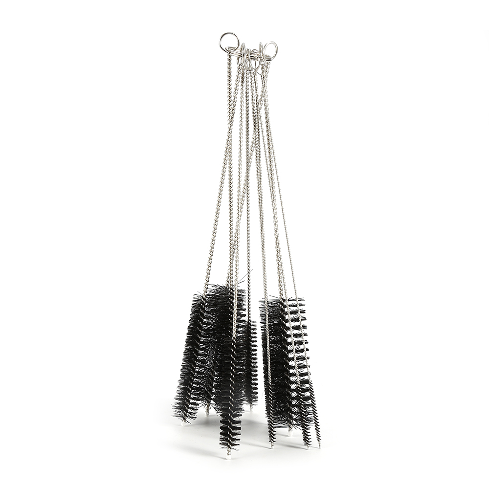 Все щетки имеют длину 200 мм, их можно мыть в посудомоечной машине, они изготовлены из нержавеющей стали и нейлоновой щетины.