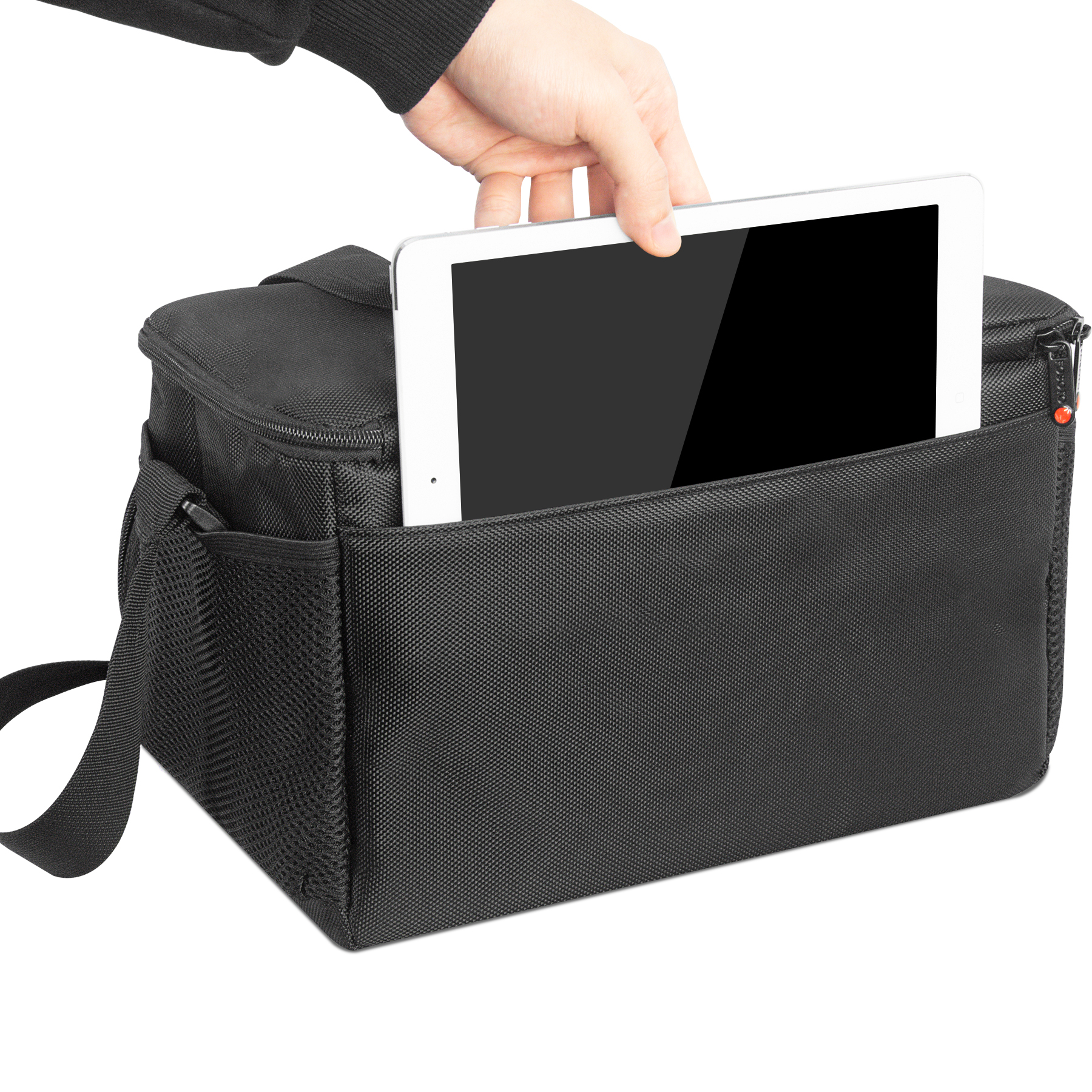 5.DIY Storage Space :Detachable velcro dividers allows you to creat individual compartments for the different sized devices. Avoiding scratches between lenses and accessories from large gaps during transportation.