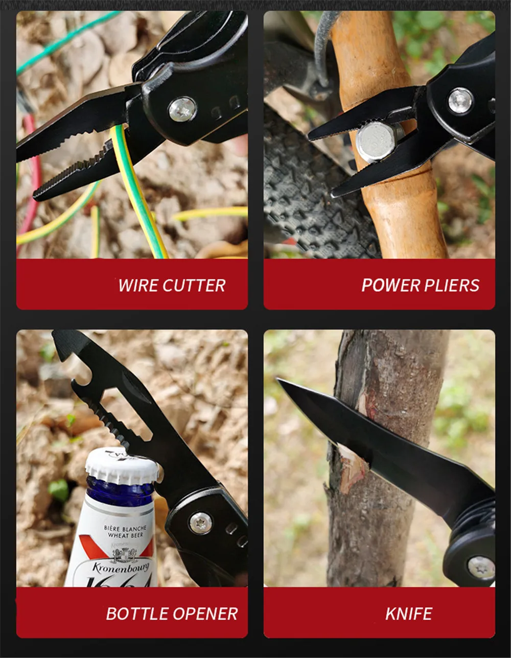 Эта пара плоскогубцев имеет 7 функций, которые позволяют делать что угодно. Вы получите мини-молоток, зажим, Электрические плоскогубцы, открывалку для бутылок, нож, головку отвертки, съемник гвоздей.