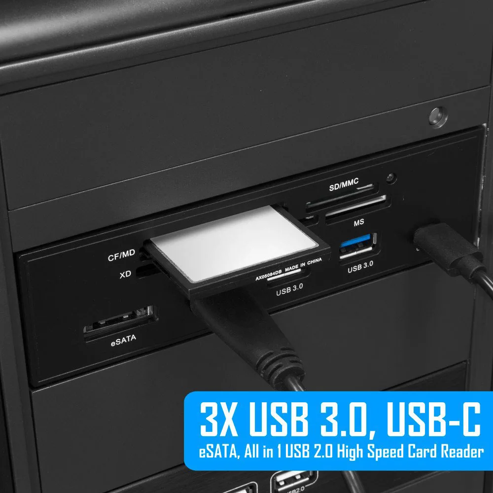 Многофункциональное устройство на передней панели с концентратором USB 3,0, кард-ридером, портом USB 3,1 и портом eSATA.
