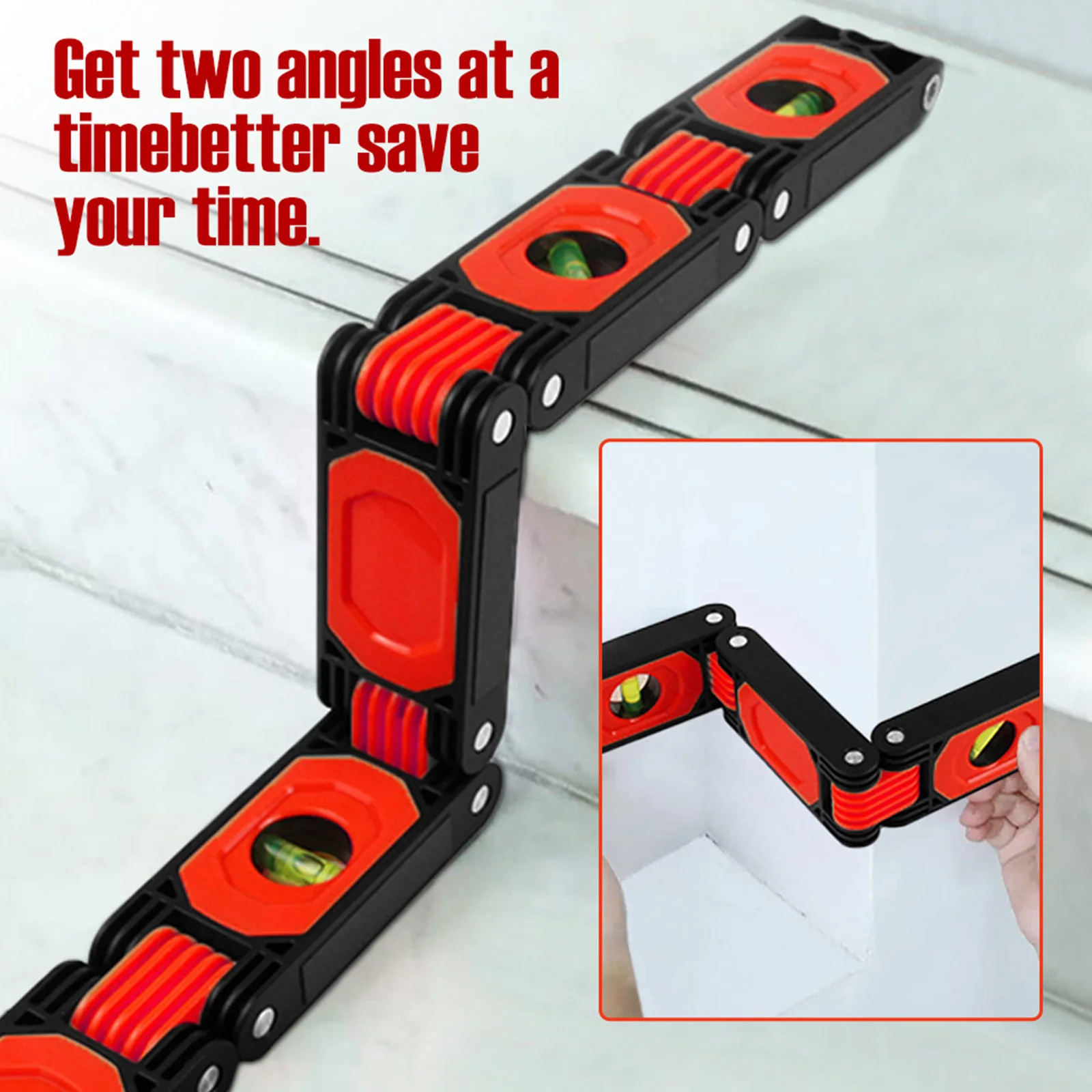 5. Вы можете сложить инструмент уровня под любым углом, чтобы обойти препятствия и одновременно измерить несколько углов, таких как трубы, лестницы и углы, которые могут быть сложены или расширены для использования.