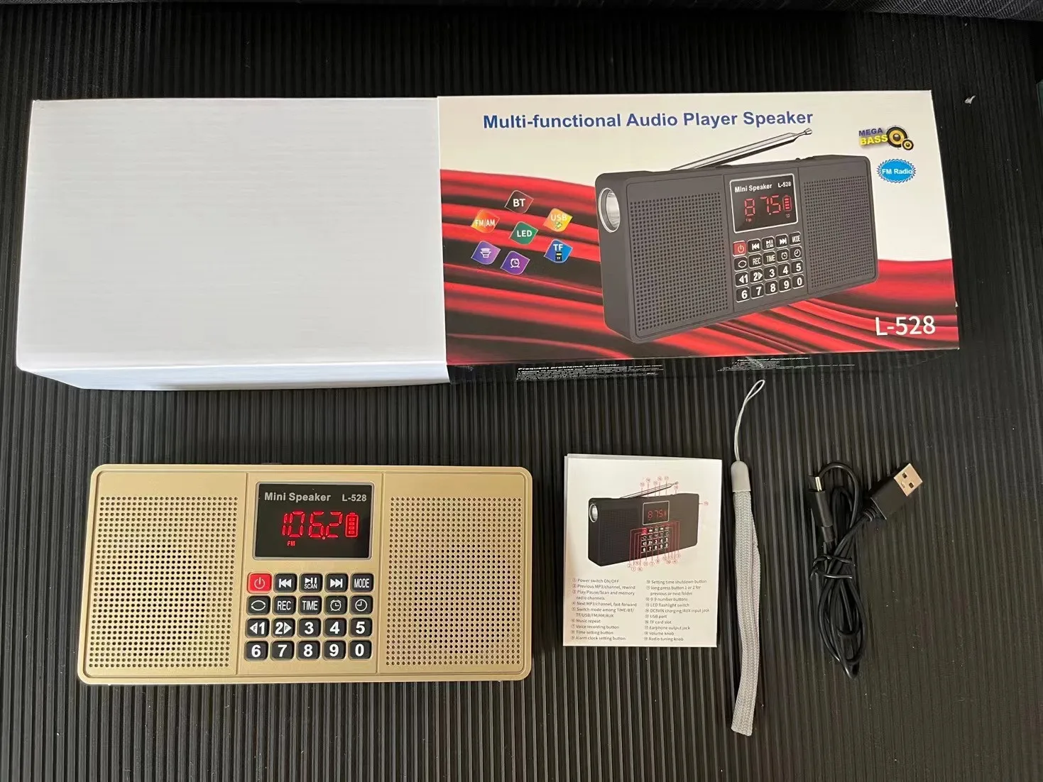 Основные функции: Bluetooth,AM,FM,TF,USB, громкая связь, AUX, фонарик, записи, цветовой сигнал, будильник, настройка времени отключения, выбор папки, автоматический/ручная ручка...