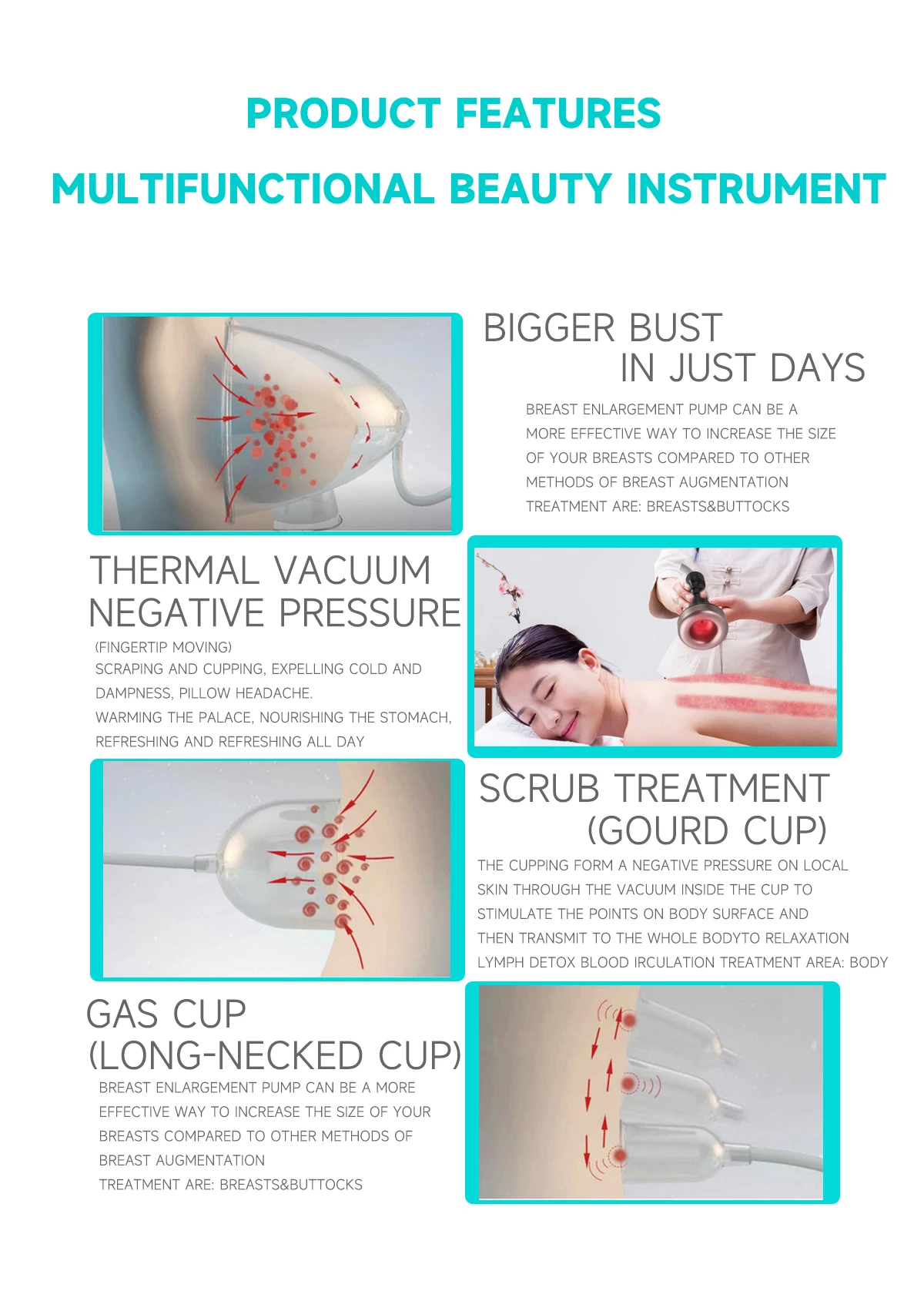 Многофункциональный вакуумный баночный соскабливание аппарат для увеличения груди насосы нагревательный терапевтический массажер усилитель ягодиц подтяжка ягодиц