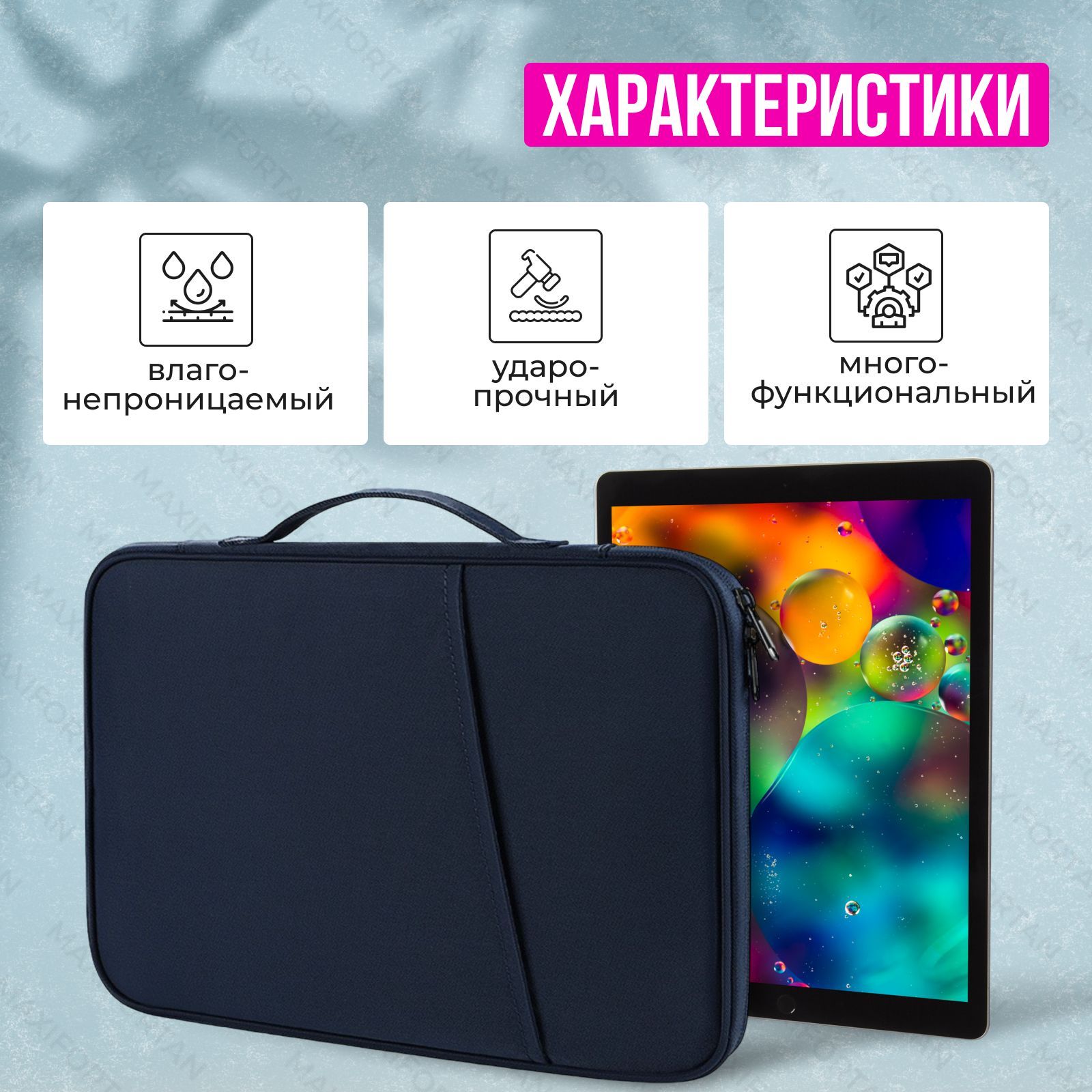 Многофункциональный водонепроницаемый чехол MAXIFORTAN для планшетов Apple iPad Pro с замком на молнии, внутренними карманами и отделениями для хранения аксессуаров и удобной ручкой для переноски